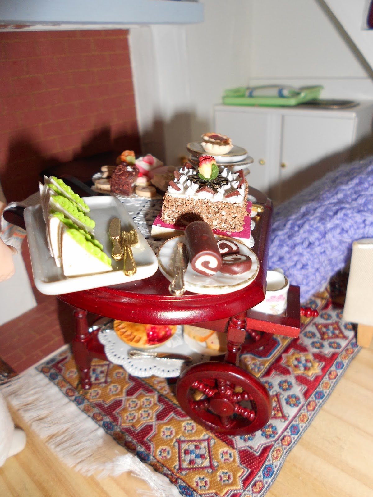Another purchase I couldn't resist lol! I saw this tea trolley on Ebay and just had to have it for my biddies. The seller very kindly did a buy it now for me for which I was pleased, I hate waiting for auctions! What a lovely seller she (Angela) turned out to be! She also sent me the wood burner for free as it had a broken leg and also some extra cakes and goodies. Stop by her Ebay shop for some of her lovely things! She doesn't have anything for sale at the mo but pop back!